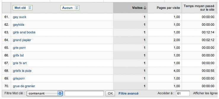 Voila ce que les gens tapent sur google avant de tomber sur mon blog. J'ai pas mit toute la liste, ça va de 1 à 80, mais je trouvais cette partie géniale.